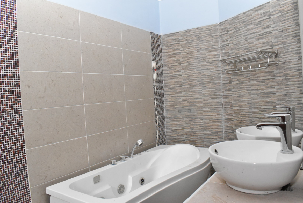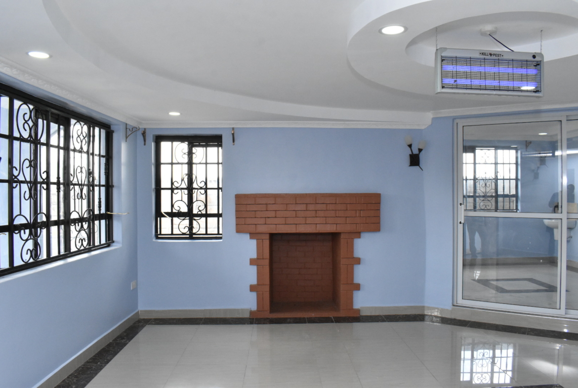 A 4br all en-suite Maisonette with An Entrance Porch // Decra Roofing // Decorative ceiling // Spacious Bedrooms // Master bedrooms balcony // Aluminium Window frames // Spacious Open Plan Kitchen // Dining Area // Kitchen Pantry // Laundry Area // Spacious Lounge // Chimney/ Fire Place // SAJ Ceramics // Mazeras Cladding // Car Port